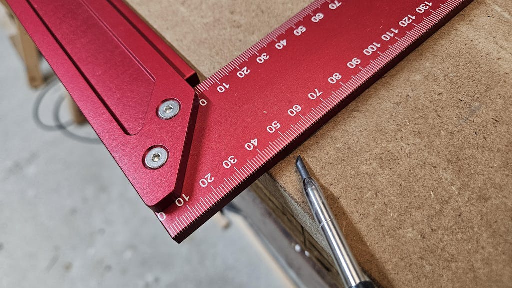 Die gelaserten, gestochen scharfen Zahlen sorgen für eine präzise Ablesbarkeit der Maße und erleichtern exaktes Arbeiten. Eine integrierte „Lippe“ dient als Auflagefläche und bietet zusätzlichen Halt, sodass du den Winkel nicht ständig festhalten musst.