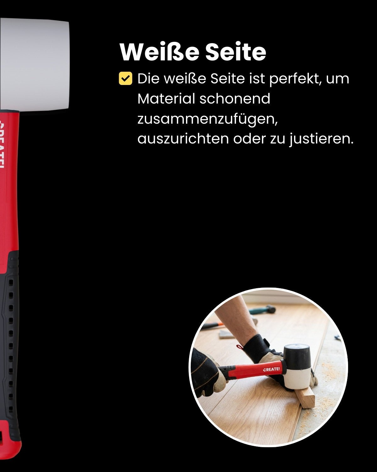 Gummihammer mit 2 Härtegraden – Fiberglas Kern | CREATE!