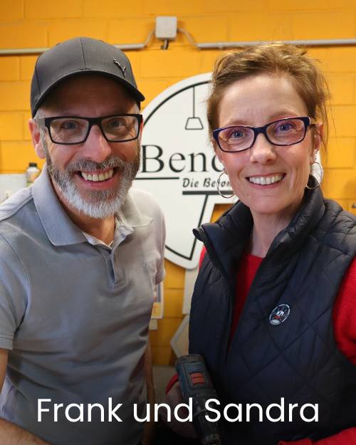 Wir – Sandra und Frank – sind ein unschlagbares Team, das mit Leidenschaft an Beton, Holz und Metall arbeitet. Seit 2022 teilen wir unsere Begeisterung auf Instagram – und das mit jeder Menge Humor! Denn wo Beton gegossen, Holz gehobelt und Metall geschweißt wird, da wird auch gelacht.